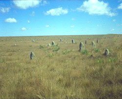 Campo Limpo repleto de cumpizeiros devido a composição química do solo. Esses cumpizeiros são a habitação de insetos sociais da ordem isoptera, conhecidos por cupins. Estes possuem uma organização em castas bastante curiosa. Essa sociedade é basicamente constituída por um rei e uma rainha (reprodutores), por operários (que executam os trabalhos de armazenar a comida e etc) e por soldados (que cuidam da segurança do cupinzeiro) e são morfologicamente diferentes.